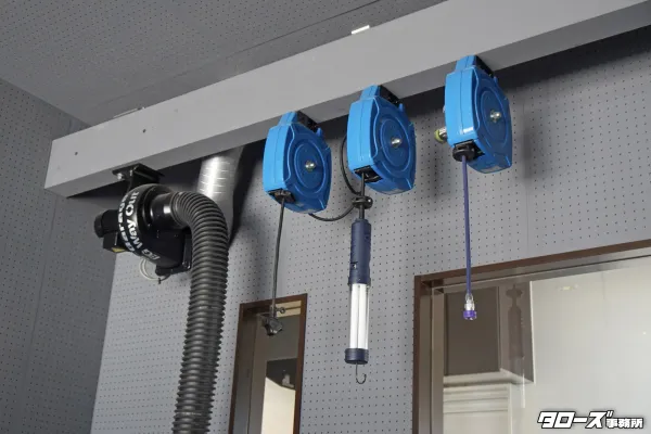 電動シャッター付ガレージ・防音ガレージ・EX排気ダクトシステム・コードリール3種類・ガレージ内エアコン・セコムセキュリティ・LDK大型強化ガラス・事務所利用可