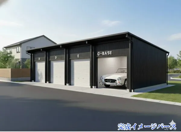 岐阜市須賀2丁目(西岐阜駅エリア)に、2026年6月完成予定の最新ガレージ「G-BASE 711」が登場!全4区画中、早くも1区画のご成約をいただきました。