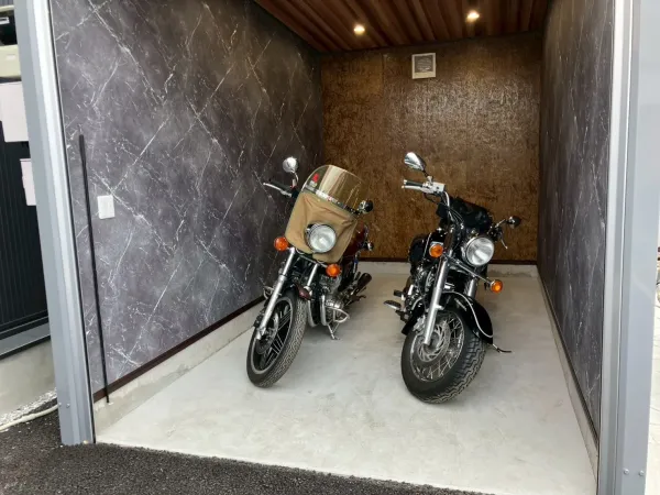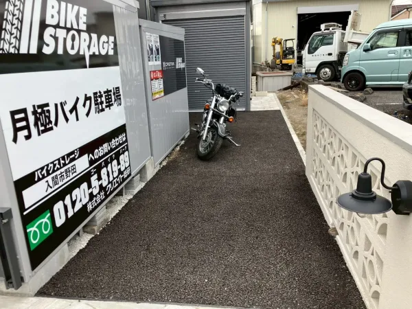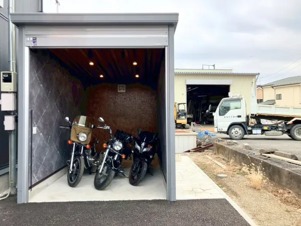 キャンペーン実施中‼ 当月日割り賃料、翌月分賃料&礼金をサービスでお貸出し 契約手数料11,000円(税込)のみ 入間市野田に大型バイクガレージがオープン‼ 国道299号線沿い「ウエルシア入間野田店」が目印! 圏央道「狭山日高IC」へのアクセスも良好。通勤通学やお出かけなど様々なシーンで好都合な立地です。 2台分の大型バイクが楽々搬入可能な大型ガレージ‼ 照明設備としてダウンライト4灯の他ライティングレール上にスポットライト2灯、2口コンセント2か所、換気扇も完備。場内には手洗い場付き。場内に防犯カメラ設置。 ご契約前に内覧だけでなく実際にバイクの出し入れをお試し頂く事も可能です。是非お問い合わせください。